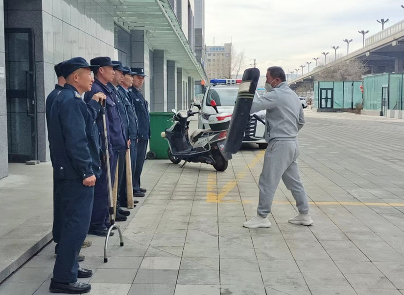 在民警同志的帶領(lǐng)下學(xué)習(xí)應(yīng)急事件如何應(yīng)對處理后,應(yīng)急安全員再次已實(shí)操方式帶領(lǐng)安保人員熟練了防護(hù)盾、防暴棍、防爆叉等防暴器材的使用方法,并及時(shí)糾正安保人員在使用防暴器械過程中存在的問題,確保他們能夠正確有效的操作防暴器械。