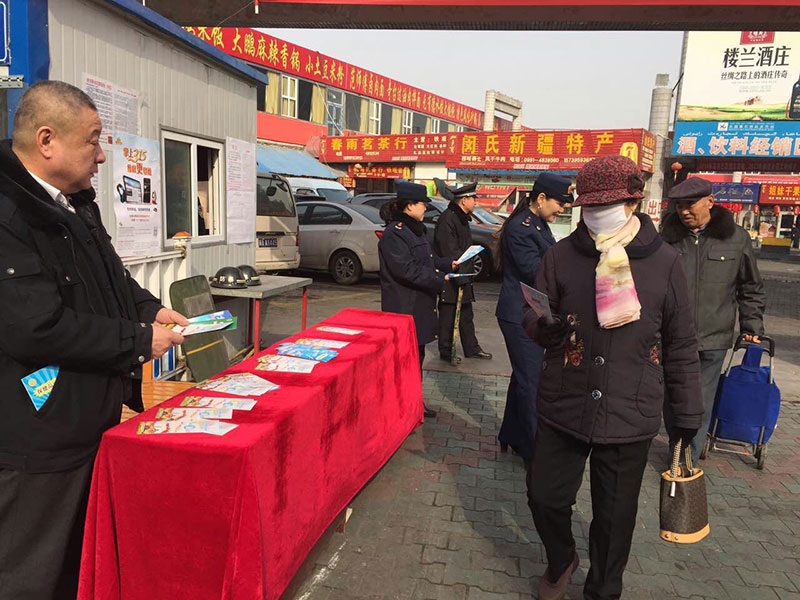 3月15日當(dāng)天,由市場(chǎng)副總經(jīng)理蘇新武陪同九家灣工商所的工作人員在副食一部大門處舉辦了“3.15消費(fèi)者權(quán)益日”宣傳活動(dòng),內(nèi)容包括現(xiàn)場(chǎng)咨詢、舉報(bào)方法、假冒偽劣產(chǎn)品鑒別及消費(fèi)維權(quán)知識(shí)的宣傳資料發(fā)放。
